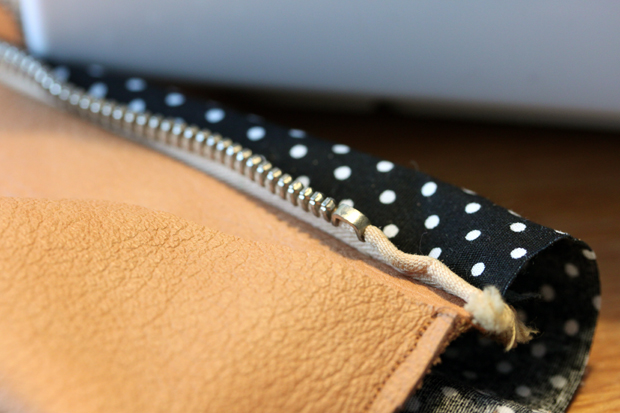 Ompelu sujui sutjakkaasti, nahkaa kun ei tarvitse huolitella. Paksu materiaali oli hieman hankala vetoketjua ommellessa.