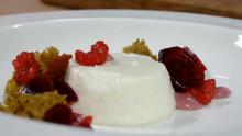 Voita ja Sokeria -resepti: Creme fraiche pannacotta, punajuurta & vadelmaa