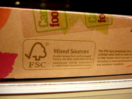 Osallistuin edellisviikolla vastuullisen paperinkulutuksen infotilaisuuteen, jossa puhuttiin FSC-paperista. Täällä meillä ei vastuullisesti kaadetun metsän puusta valmistettua paperia vielä juurikaan käytetä edes tulostuspaperina, mutta Englannissa siihen pakataan jo eväätkin!