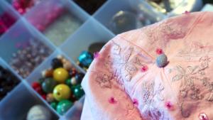 Lastenhuoneen lattialla vallitsee ajoittain irtotavaroiden kaaos, joten päätin tehdä oranssinkeltaisesta huovasta jotain, joka taltuttaisi kaaoksen. Lähtökohtana oli Ylen vanha messumatto, jota halusin hyödyntää.