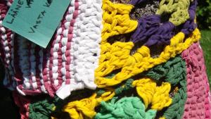 Menin ihan pöhköksi Tallinnassa, kun näin keskustan puistoon virkatut ja neulotut graffitit. Isoäidinneliöpuu! Villakukkaistutus!