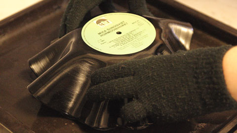 Jos haluat kolhitulle vinyylilevylle uuden muodon, valmista LP-levystä kulho. Käytä apuna uuninkestävää vuokaa tai kakkuvuokaa.