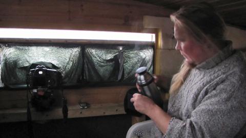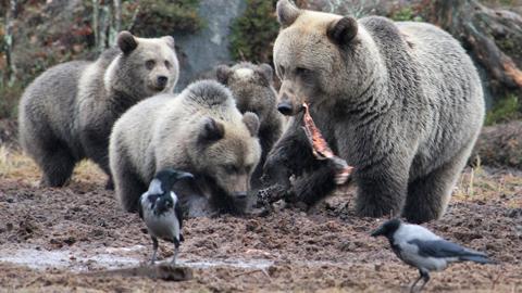 Piilokoju on mainio paikka tarkastella villien karhujen liikkeitä lähietäisyydeltä. Myöhään syksyllä karhujen on vielä tankattava rasvavarastojaan, jotta ne pärjäävät kuukausien ajan talvipesässä. Ohuella lumipeitteellä näkyi vielä karhujen jälkiä ja illan aikana useat kontiot vierailivat piilokojun tuntumassa. Tilanne tiivistyi entisestään, kun kokonainen karhukopla saapui emonsa kanssa kameroiden eteen.