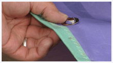 Purjerenkaat kiinnitetään purjeeseen työkalun avulla, jota voi vuokrata veneilytarvikeliikkeistä. Purjerenkaalle tulee ensin leikata sopiva reikä mattoveitsellä ja sitten asettaa hela ja vastakappale paikoilleen. Saavuttaaksesi hyvän lopputuloksen, tarkista vielä että työkalu on helaan nähden oikeassa asennossa.