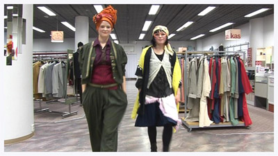 Tällä kertaa kisattiin Lahden kierrätystavaratalo Kontissa ja tehtävänä oli koota monikulttuurisen taidetapahtuman juontajan asukokonaisuus.